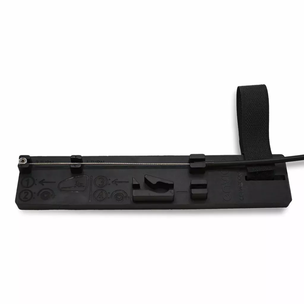 Avec l’outil d’installation des câbles Enviolo, le changement et l’ajustement de la longueur des câbles de dérailleur deviennent un jeu d’enfant. Le gabarit dispose à cet effet de deux dispositifs de mesure. L’un pour raccourcir le câble avec fixation pour câble, et l’autre pour le câble Bowden avec le mamelon à vis. Vous pouvez ainsi changer les câbles Bowden de votre interface de commande manuelle avec poignée tournante en quelques minutes.