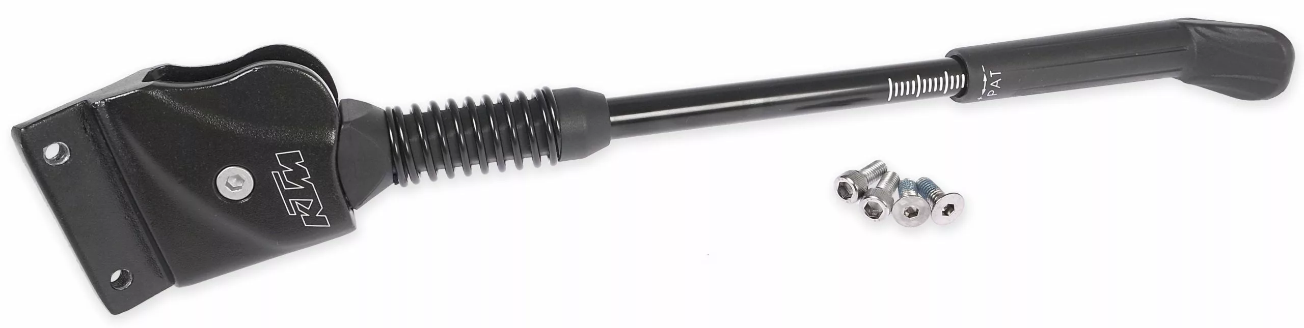 La béquille KTM est livrée avec vis de fixation et peut être allongée d’environ 5 cm en tournant le pied du support.
