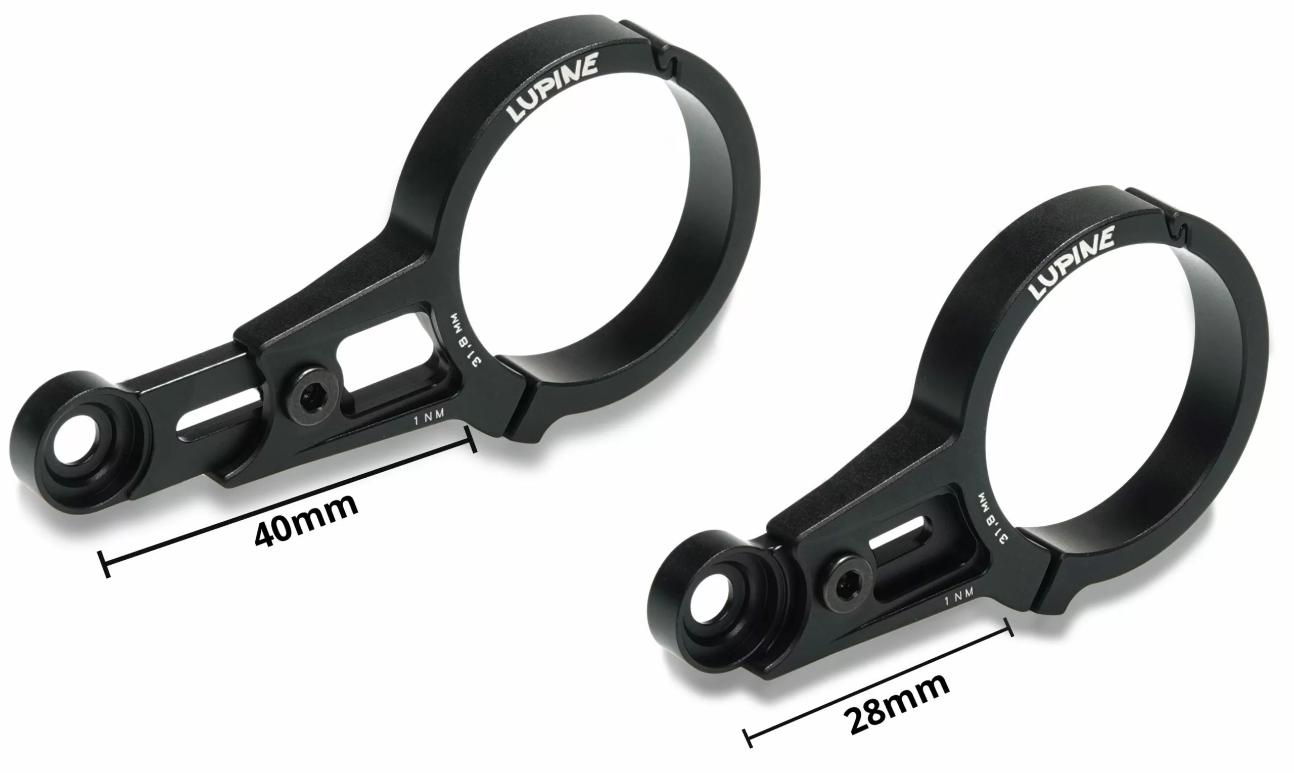 Support réglable en aluminium Lupine SL F Flexmount pour le montage du phare Lupine SL F sur le guidon de votre vélo électrique. Le bras de ce support est réglable en longueur de 28 mm à 40 mm (du guidon au centre du trou) un atout pour les potences plus larges, si vous utilisez le Bosch Smartphone Hub ou un ordinateur de bord.