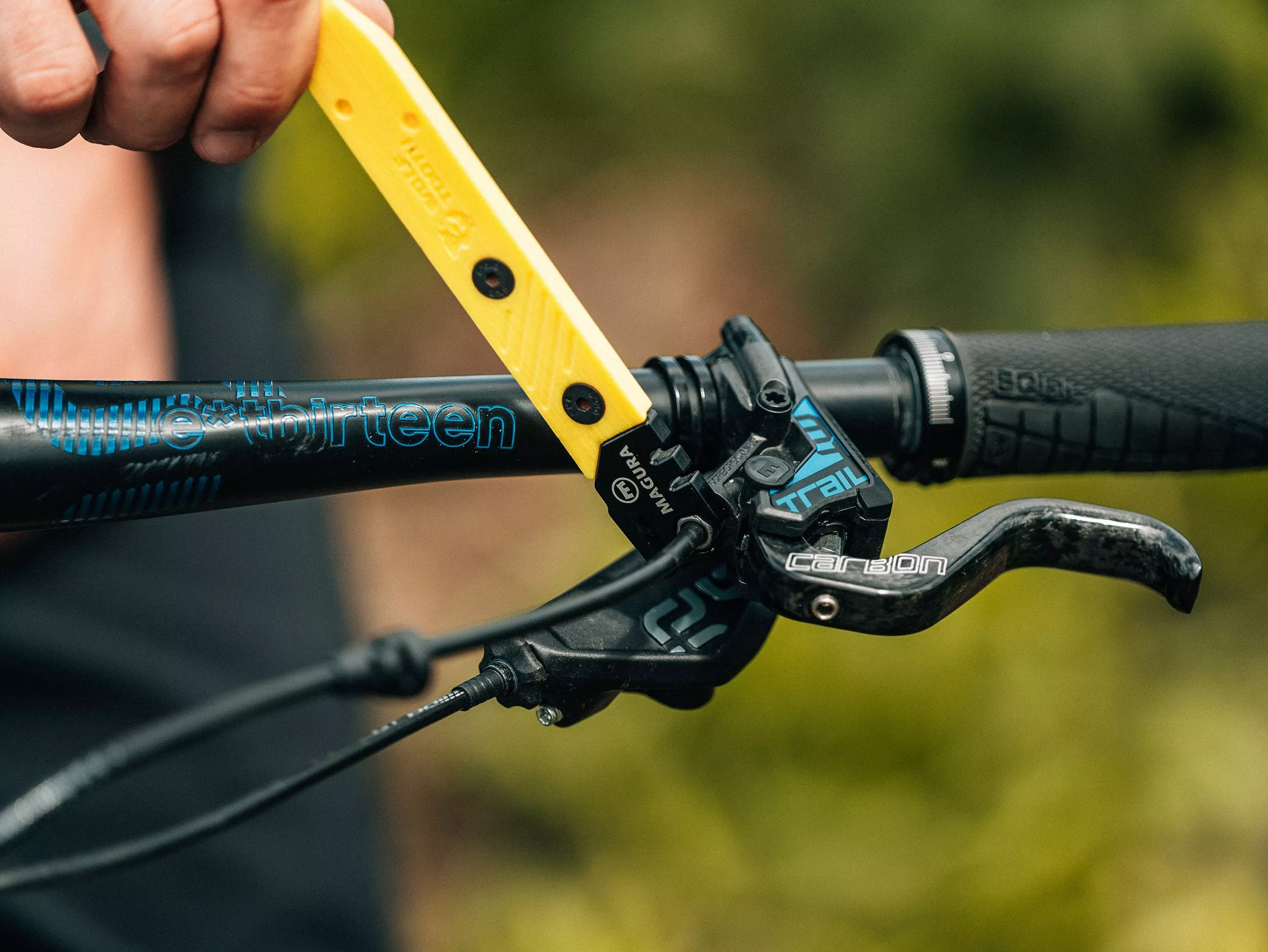 Le spécialiste allemand des freins Magura a intégré à cet outil des aides pratiques pour la réparation et l’entretien des freins à disque. L’extension se fixe magnétiquement à l’outil de base. Fabriqué en aluminium 7075-T6, il offre des outils pour mesurer l’usure des plaquettes et des disques de frein, pour redresser les disques de frein ainsi qu’une clé à ergots 8 mm. L’extension Multitool Magura est ainsi votre arme secrète en cas de difficultés avec votre système de freinage sur les trails.