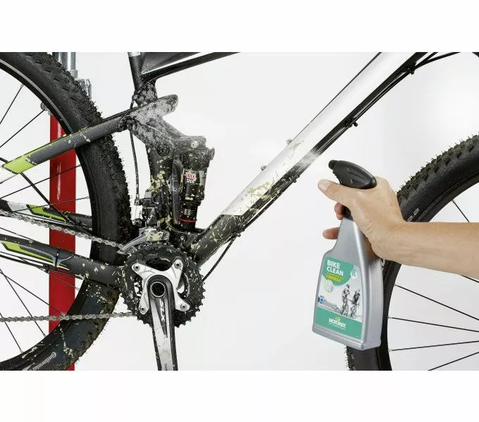 Bike Clean de Motorex est un produit de nettoyage sans solvants destiné au nettoyage des vélos très encrassés. Avec sa texture gel il dissout et élimine boue, terre, poussière en un clin d’œil. Il ne laisse pas de pellicule grasse et n’altère pas le freinage. Il peut s’utiliser sur le carbone.