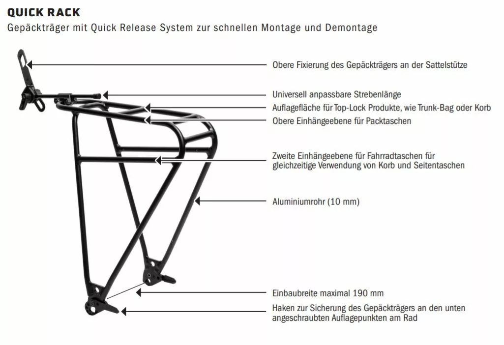 - porte-bagages léger avec système Quick Release pour un montage et un démontage rapides sur le vélo
