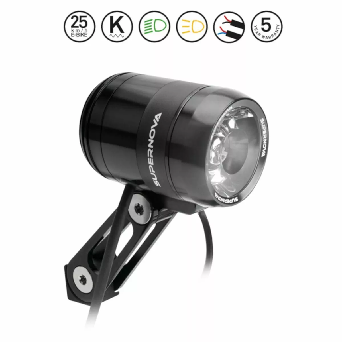 Caractéristiques du feu avant Supernova V1280 E-25 pour vélo électrique :