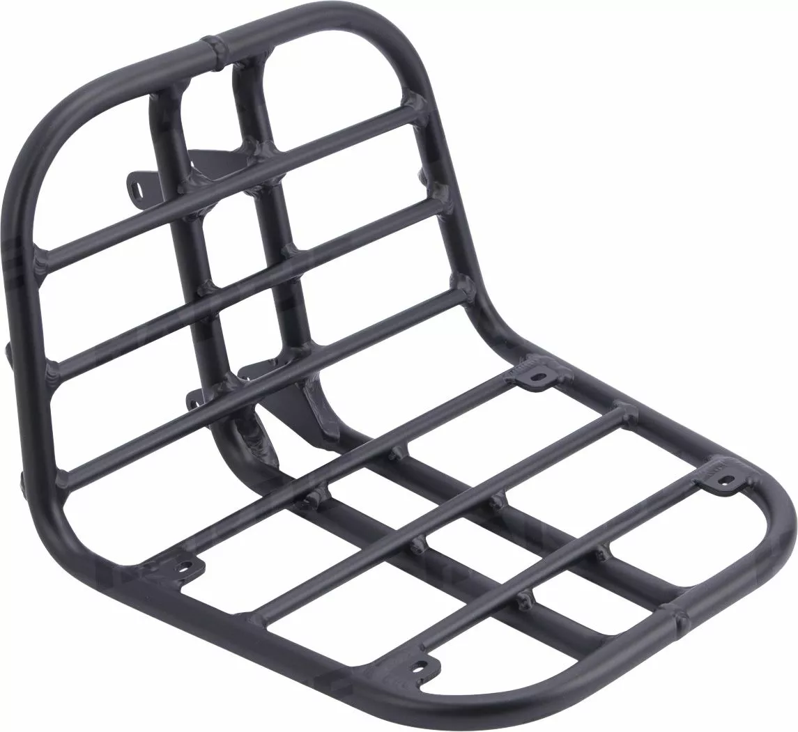 Il dispose de 4 trous permettant de fixer une caisse de transport pour une solution de transport semi-permanente et de deux porte-bidons orientés vers l’arrière. Il est livré avec un tendeur pour sécuriser votre marchandise au cours de son transport.