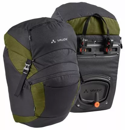 Sacoches Vaude OnTour Front pour roues avant. Conçues pour les voyages à vélo électrique mais adaptées à un usage en ville grâce à leur bandoulière amovible. Ces sacoches offrent un espace de rangement de 16 litres chacune.