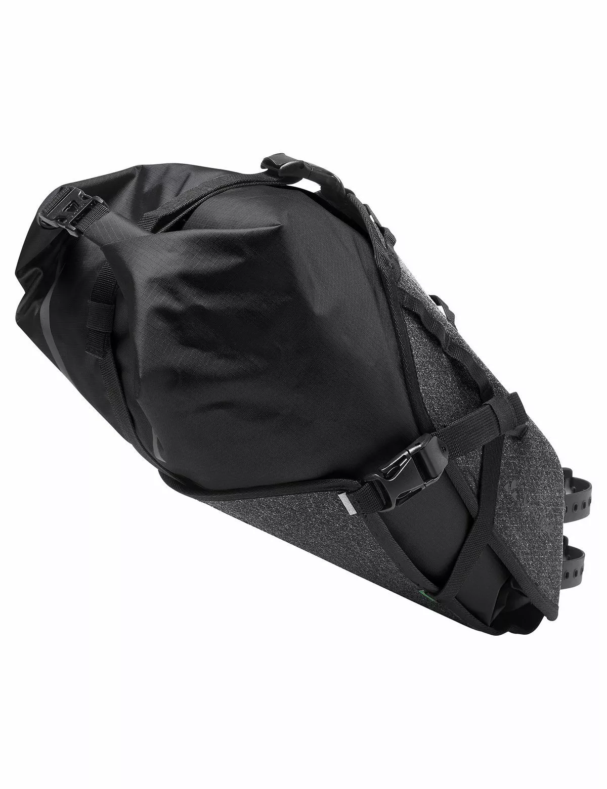 Cette sacoche de selle Vaude Trailsaddle II est une sacoche de bikepacking de 10 L qui vous permettra de ranger tout votre équipement. Elle s’insère dans un dispositif robuste qui se fixe à votre selle & tige de selle (montage facile grâce à la technologie Powerstrap) et qui reste en place lorsque vous retirez la sacoche. Les sangles de compression latérales assurent une tenue suffisante de la pochette et l’empêche de se défaire pendant que vous roulez. En plus de garder votre équipement au sec, la sacoche de selle Vaude Trailsaddle vous protège de la boue et des éclaboussures.