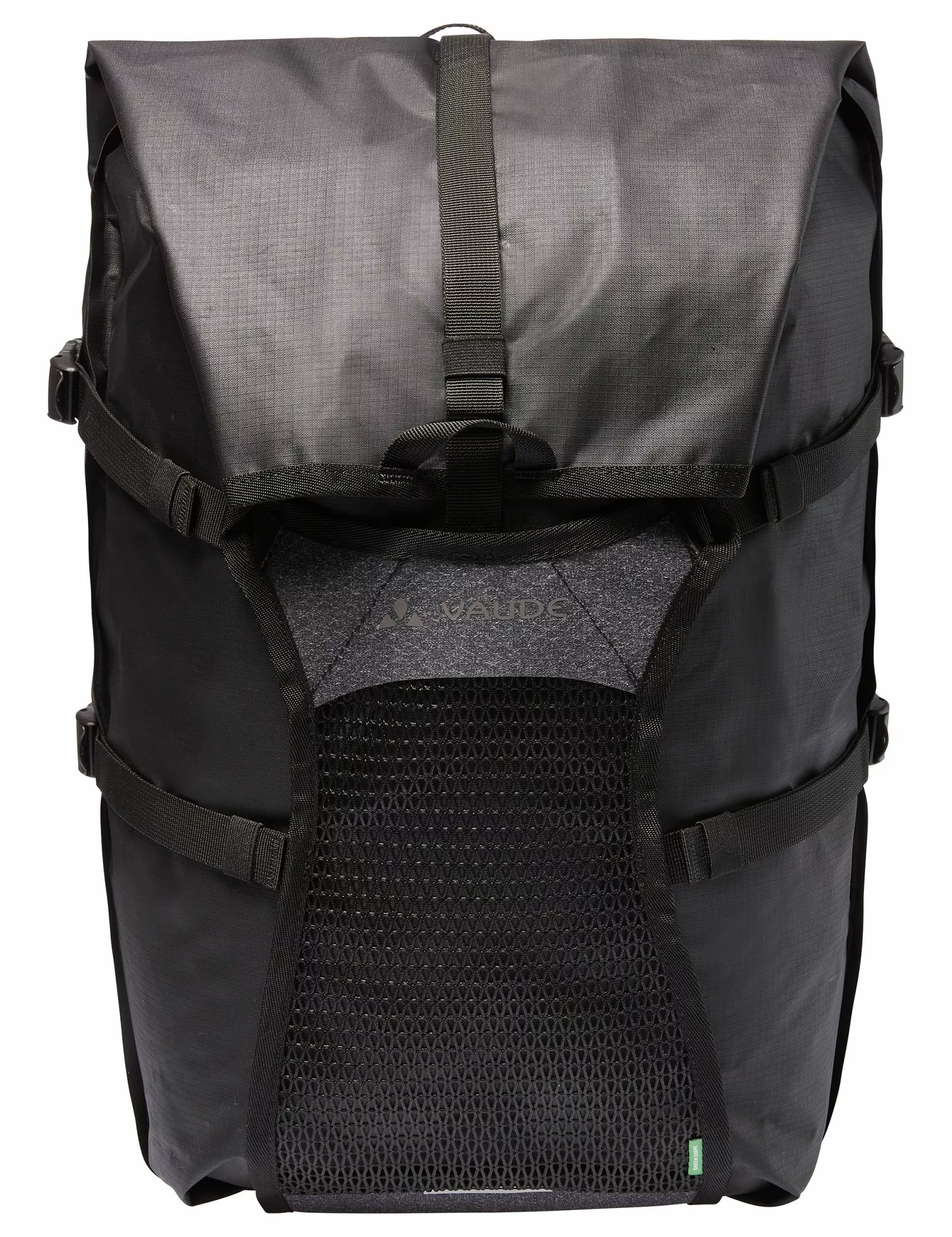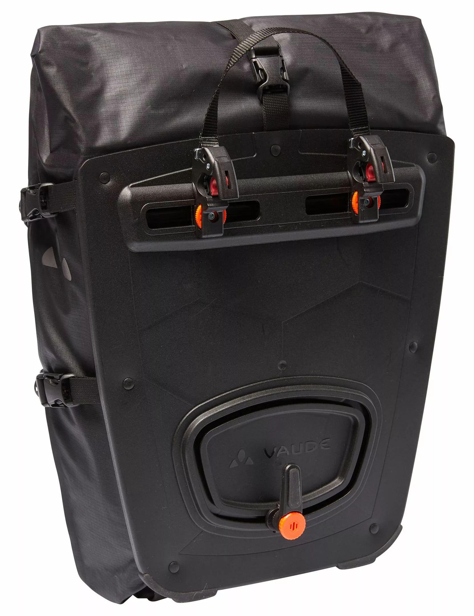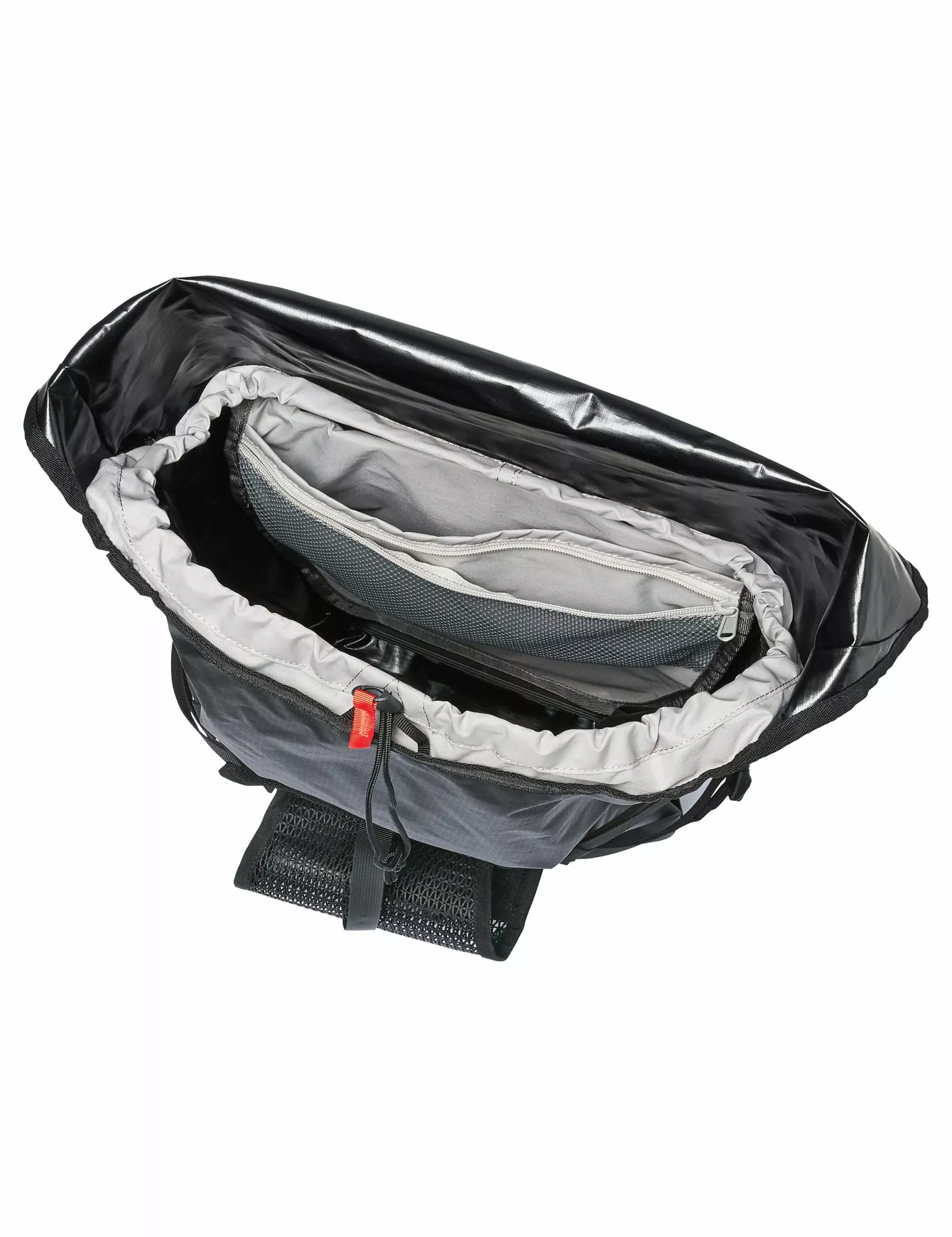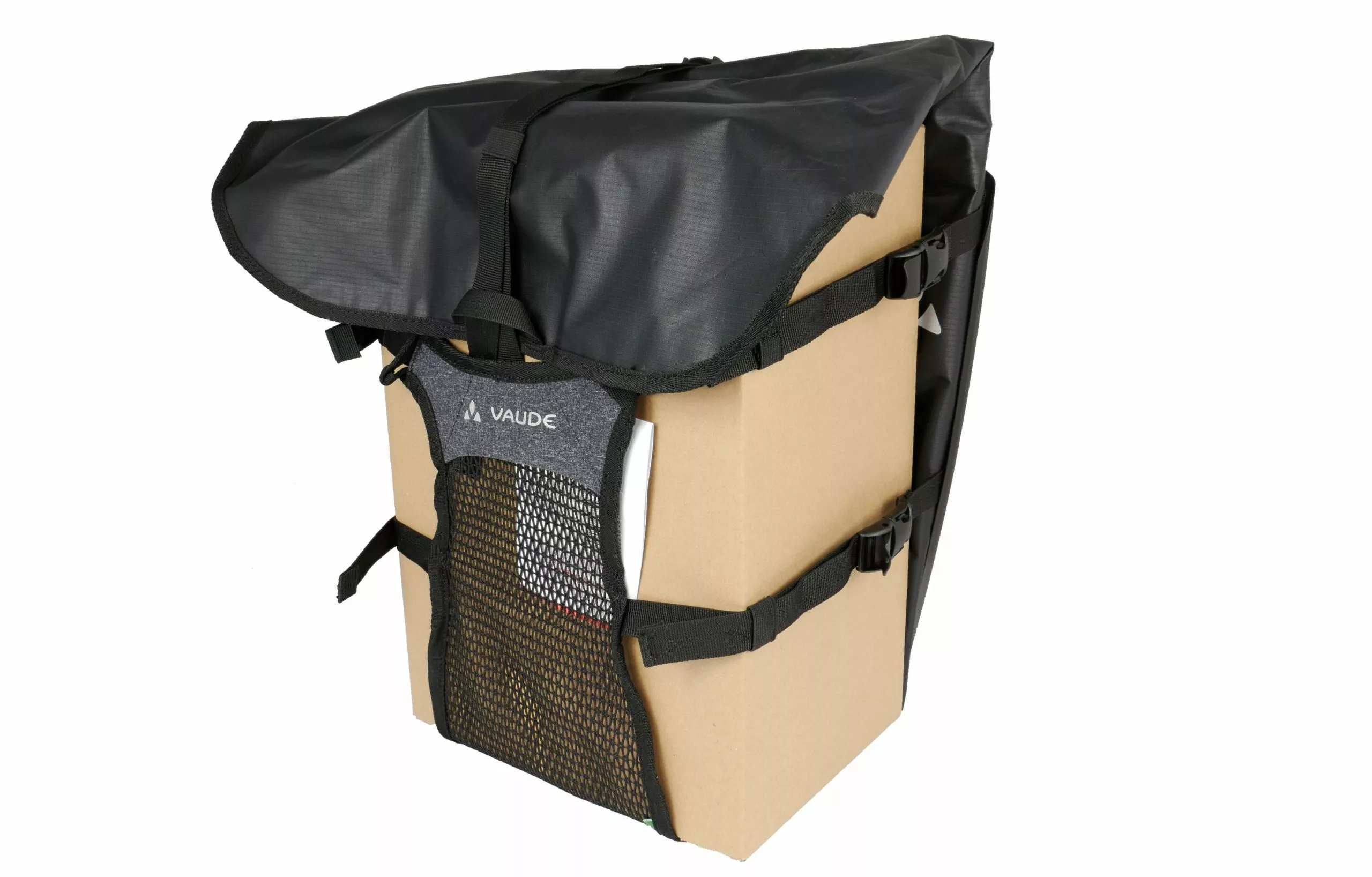 Sacoche vélo Vaude Trailcargo. Sacoche vélo multifonction. Son compartiment principal spacieux offre un espace de rangement généreux de 21 litres. Cette sacoche vous offre la possibilité d’accrocher un paquet, qui n’entrerait pas dedans, derrière le rabat flexible sur l’avant à l’aide de 2 sangles de compression.
